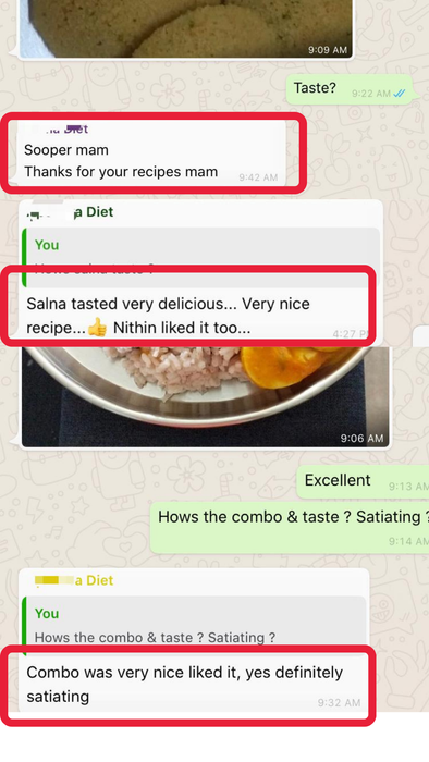 Direct WhatsApp access to consult with the dietitian on whether a recipe is suitable for conditions like diabetes, cholesterol, or thyroid management